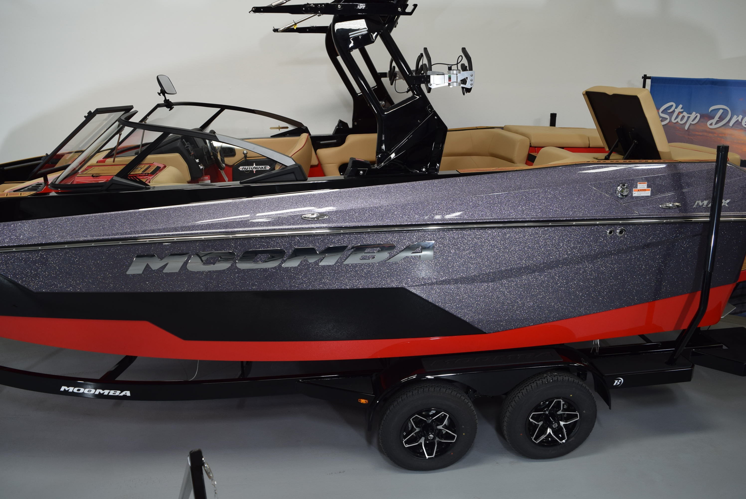 The Moomba Max turns every ride into an adrenaline-pumping adventure. With its crisp, consistent wakes, the Max gives wakeboarders the perfect launch pad to soar high and land smoothly. Whether you're chasing big air or refining your spins and flips, the Max delivers the ultimate wakeboarding experience.