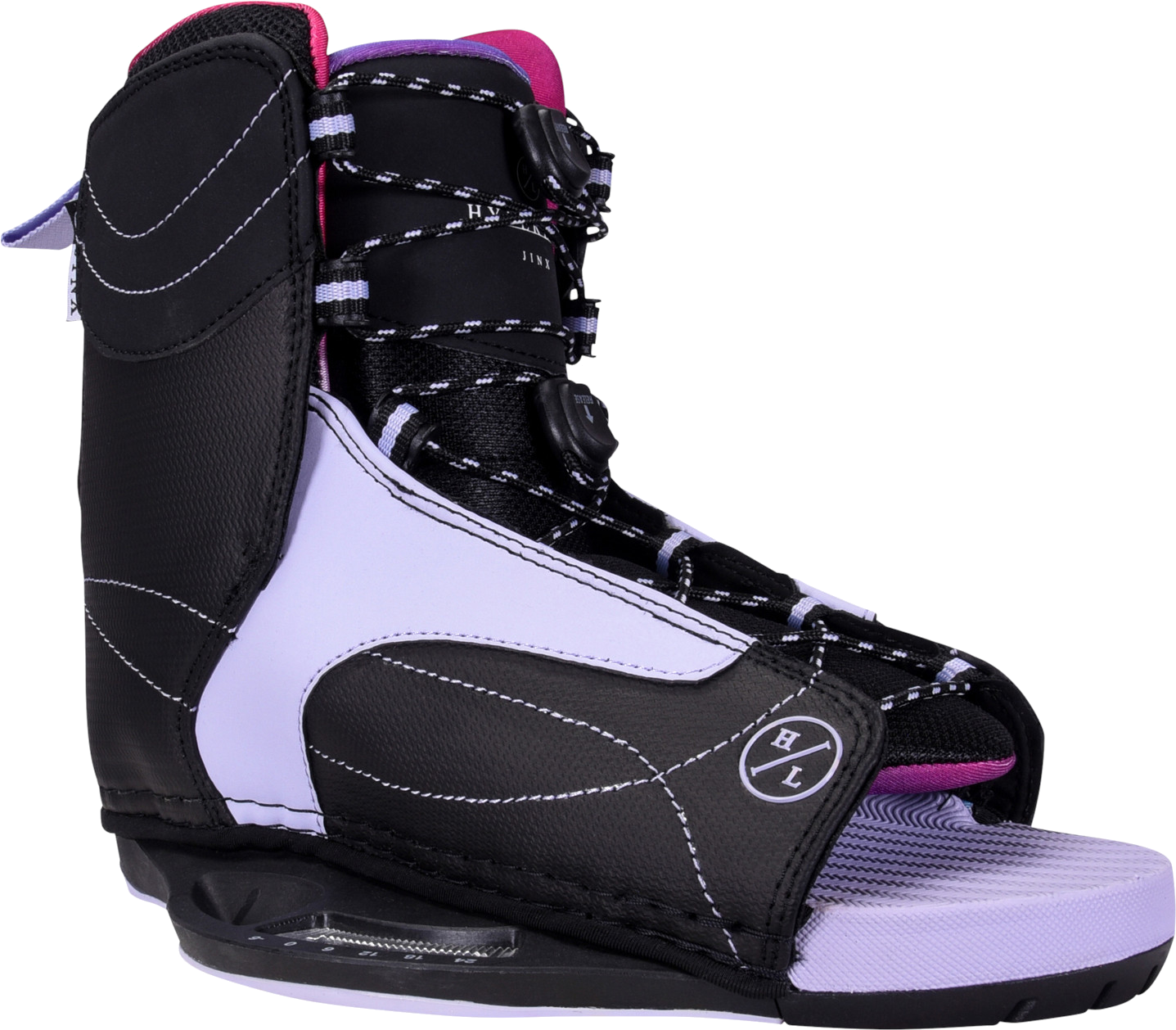 The Jinx is a supportive and easy to get into adjustable wakeboard binding. It features Dual Lace Zones like much more expensive boots, plus the plushness you come to expect from an open toe binding. The 3D molded tongue provides maximum comfort with no sacrificed board control. The Jinx is an excellent choice for beginner to intermediate riders looking for a comfortable, user-friendly option.