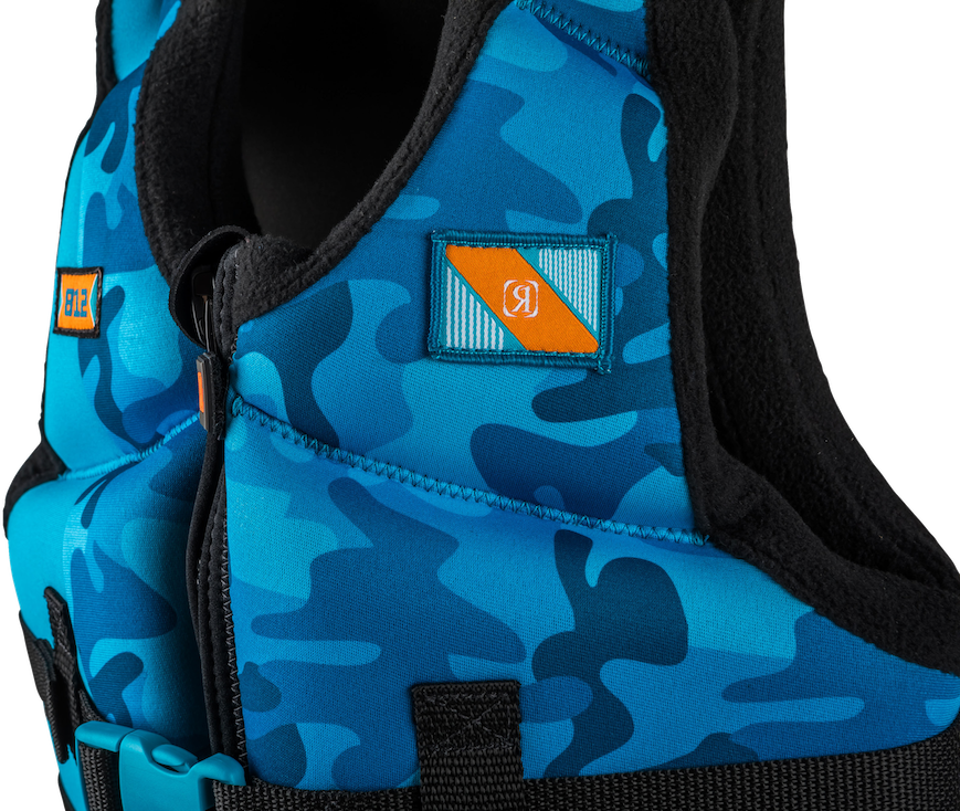Luxury is now available in a kid's vest. All of our vests are soft, comfortable and most importantly float. We wanted to create a new series that added every premium innovation we could come up with. These jackets are made from a softer inner and outer neoprene material, have added fleece to further that lavish feeling, and we also covered the webbing straps with a forgiving neoprene cover. Everything about this new series of kid's CGA jackets is designed for added coziness and durability, to allow for more time in the water or on the boat.