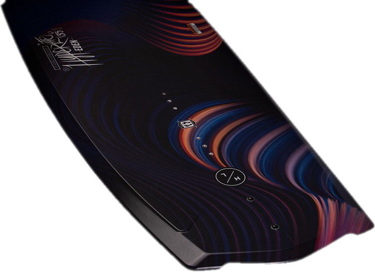 Creating a women's shape to take their skills to the next level was the goal behind the new Eden 2.0. Learning from other asymmetrical designs, we found that creating a shorter but more effective edge on a rider's toe-side made hard to learn wake jumps that much easier. This is because there is less rail to initiate when applying toe-side pressure. Once set, the smoother toe-side transition is then held by the Eden 2.0's thinner profile molded-in fin, creating less drag and a better release off the top of the wake. Subtle toe-side footbed risers were also added to help a rider create more leverage when pressure is applied. The longer, more traditional heel-side edge compliments this asymmetrical design by allowing the natural body position of a rider to generate stability and speed into the wake without a loss of pop due to reduced surface area. The Eden 2.0 has been tested and proven to be the best choice for a rider looking to master the fundamentals of wakeboarding.