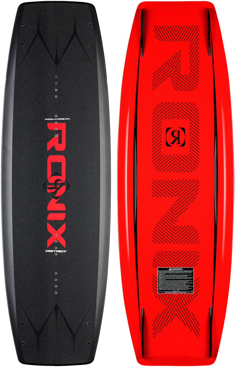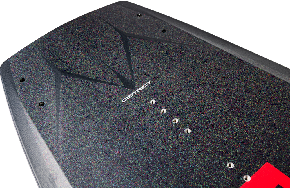 This board has the rare trait of adapting to you, regardless of your style or ability. The District, with its hybrid rocker, ranges from smooth/low maintenance turns to wide open high-speed cuts. With fast, predictable takeoffs, to explosive wake to wake jumps, this is a series that truly covers the spectrum. Riders that approach the wake flat into the wake will notice a strong, explosive 3-stage lift. If you approach the wake while on rail you will notice a smooth, blended rocker line with an uninterrupted fast take-off and landing. Riders who tend to distribute their weight evenly will experience a freeride, floaty feel when they initiate turns. On the flipside, riders can experience hairpin turns with quick edge transitions if they shift their weight to the tail of the board..